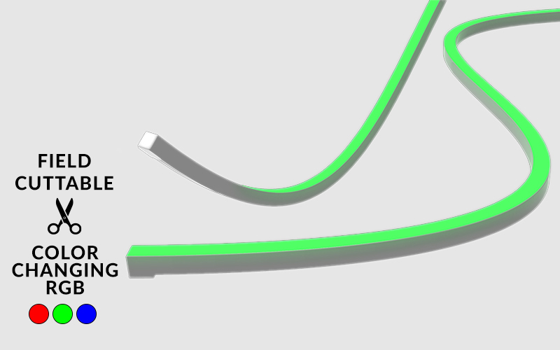 4.4W/ft surface mount, field-cuttable, mini square profile LED Neon. Recommended applications: Outdoor/Indoor accent lighting, retail signage.