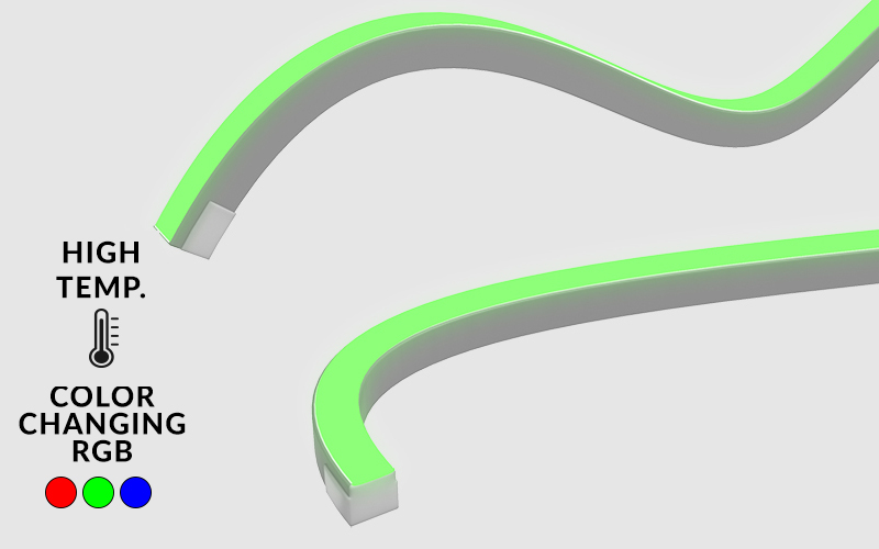 1.4W/ft surface mount, square profile LED Neon. Designed specifically for use in high ambient temperature applications such as wet or dry saunas.