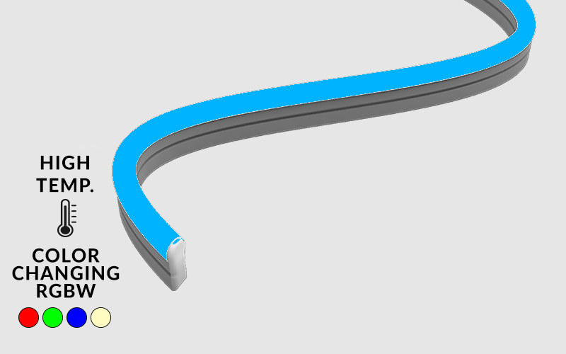 1.5W/ft surface mount, dome profile LED Neon. Designed specifically for use in high ambient temperature applications such as wet or dry saunas.